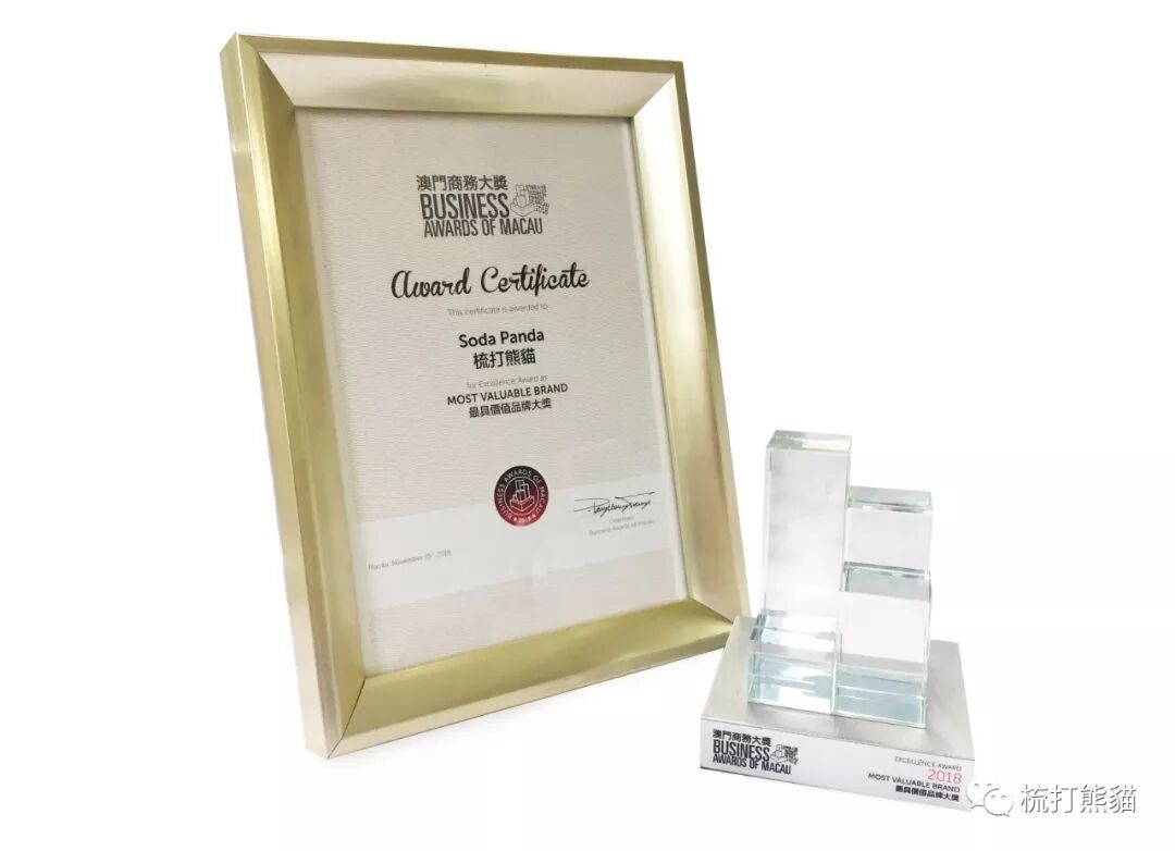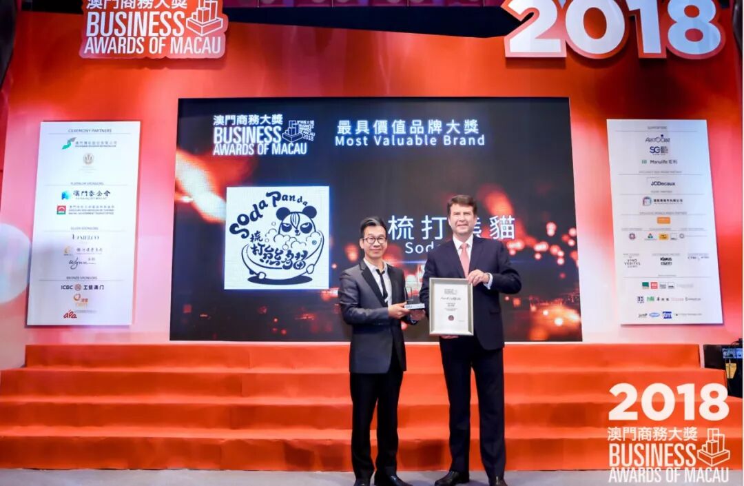 梳打熊貓榮獲2018澳門商務大奬「最具價值品牌大獎」