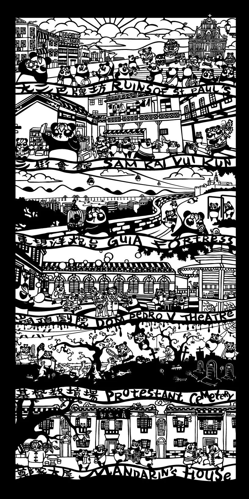 「梳打熊貓」的口號:開心色彩源於黑白分明。這是一種信念也是一種態度。我們將中華文化,環保意識,愛護動物等等正能量,以調皮搞怪的形像盡情演繹。